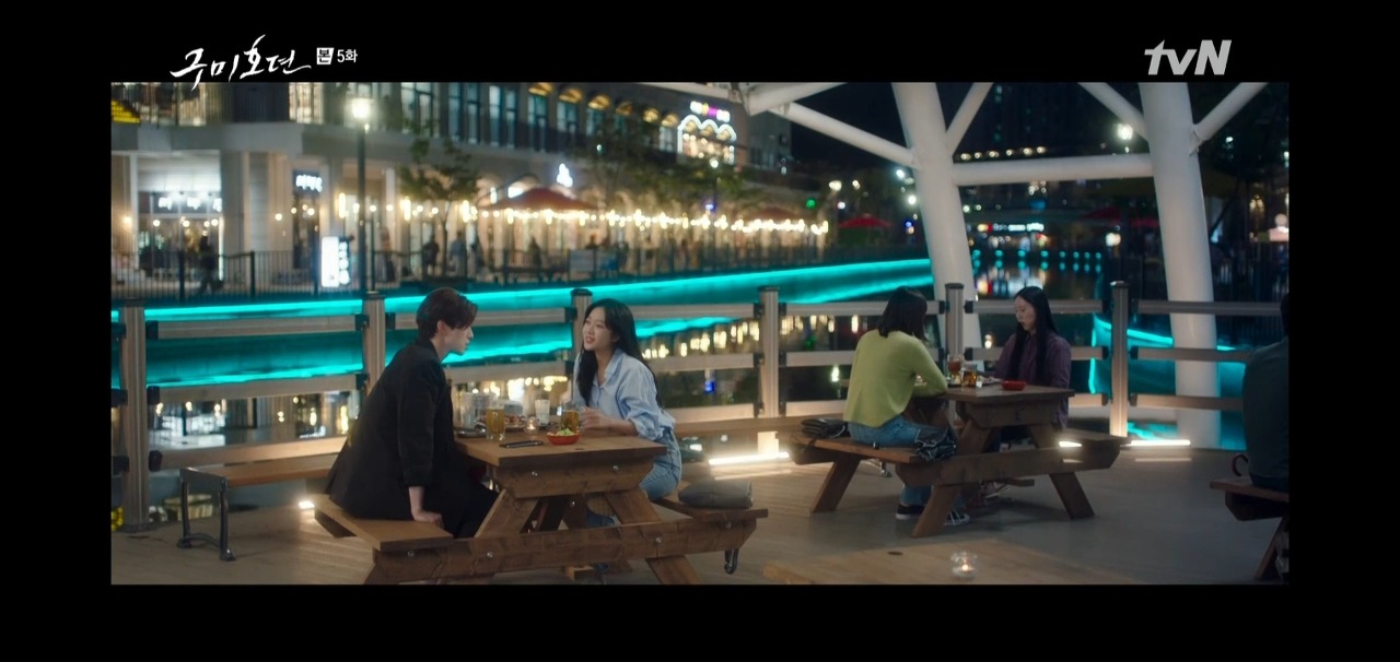 구미호뎐 촬영지 중 5회에서 이동욱과 조보아가 맥주를 마시던 노천 호프는 김포 라베니체에서 촬영됐다.