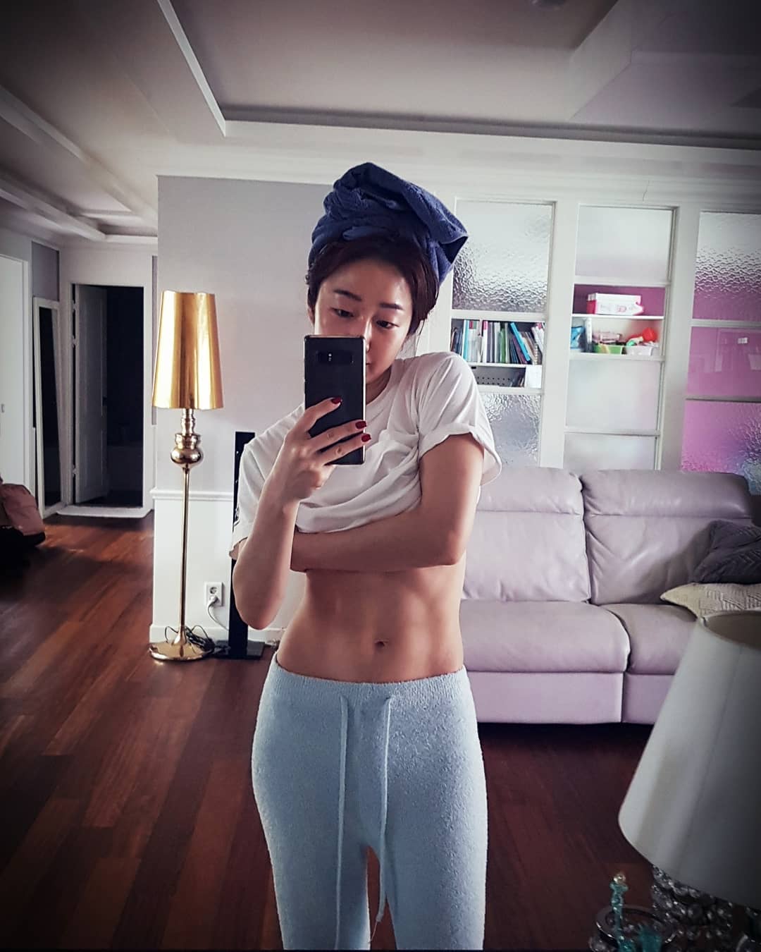 도무지 결혼 18년차의 딸 둘을 둔 아줌마 몸매로 보이지 않는 아나운서 김경화 복근 몸매.