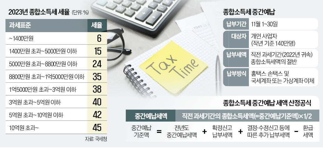 납세자는 전년도 소득에 대한 종소세를 이듬해 5월 말까지 신고하고 납부해야 합니다. 이 기간 동안 상반기 소득에 대한 중간예납, 즉 중간정산 절차를 거칩니다. 이는 개인 사업자를 대상으로 하며, 내년 5월 종소세 확정신고 시에는 이미 낸 중간예납 세액이 공제됩니다. 단, 이자, 배당, 근로소득 등이 원천징수되는 소득이거나 중간예납세액이 50만원 미만인 개인 사업자는 중간예납 대상에서 제외됩니다. 또한, 올해 신규로 개업한 사업자나 6월 30일 이전에 휴·폐업한 사업자 역시 대상에서 제외됩니다.