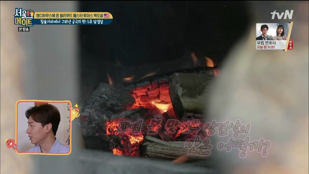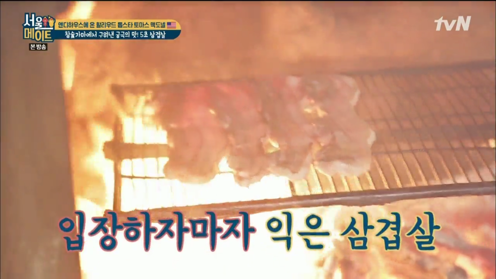 서울메이트에서 앤디가 알렉스 새광주 참숯가마 3초삼겹살