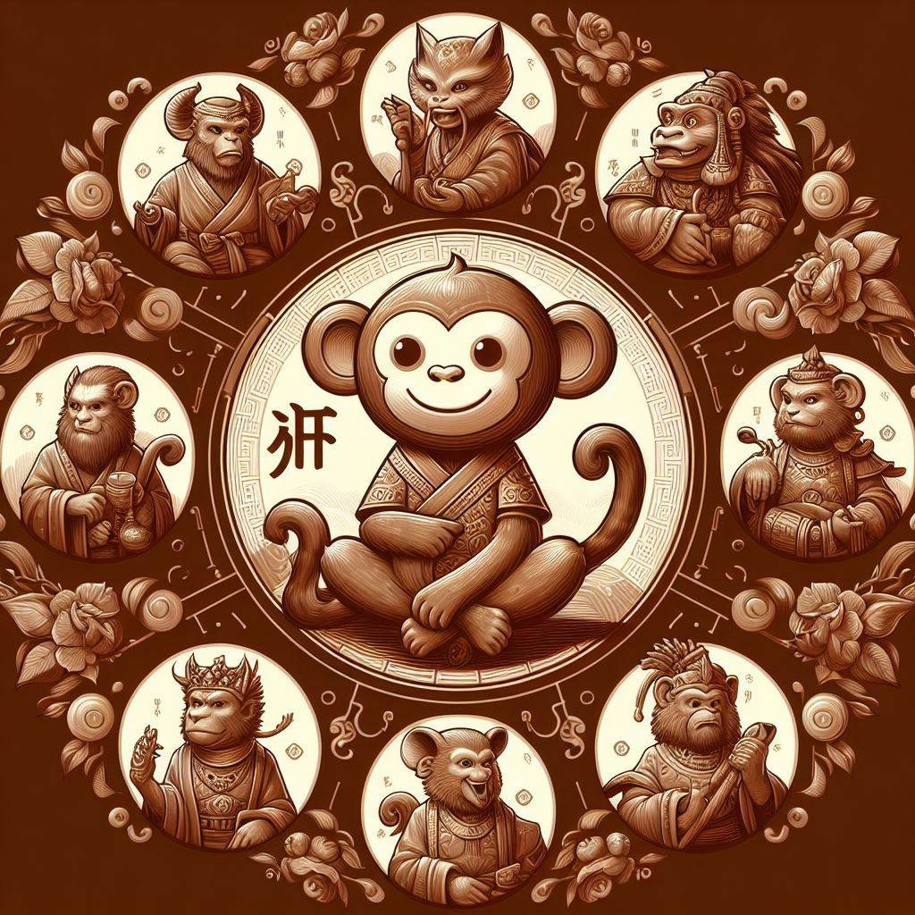 • 원숭이 (申): '신(申)'은 호기심과 창의성을 상징합니다. 원숭이는 영리하고 활동적인 동물로, 새로운 것에 대한 도전과 변화를 두려워하지 않는 특성을 가지고 있습니다. 이는 인간의 창의성과 끊임없는 발전을 상징합니다.