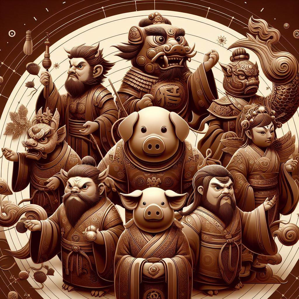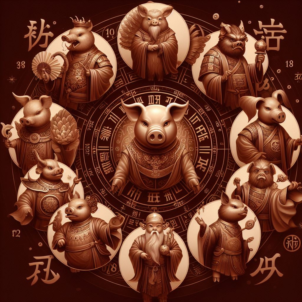 • 돼지 (亥): '해(亥)'는 다산과 부를 상징합니다. 돼지는 풍요와 번영을 의미하며, 가족의 번영과 경제적 안정을 상징합니다. 돼지는 또한 관대함과 풍족함의 상징으로, 안정적인 삶을 나타냅니다.