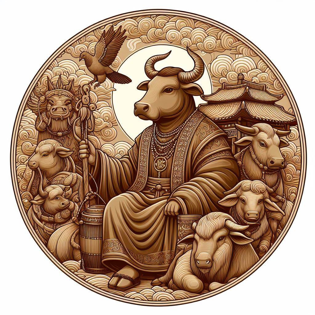 • 소 (丑): '축(丑)'은 근면과 인내를 상징합니다. 소는 농업 사회에서 중요한 역할을 했던 동물로, 성실함과 꾸준함의 상징입니다. 묵묵히 자신의 일을 다해내는 소의 성격은 안정과 성장의 기초를 다지는 중요한 덕목으로 여겨집니다.