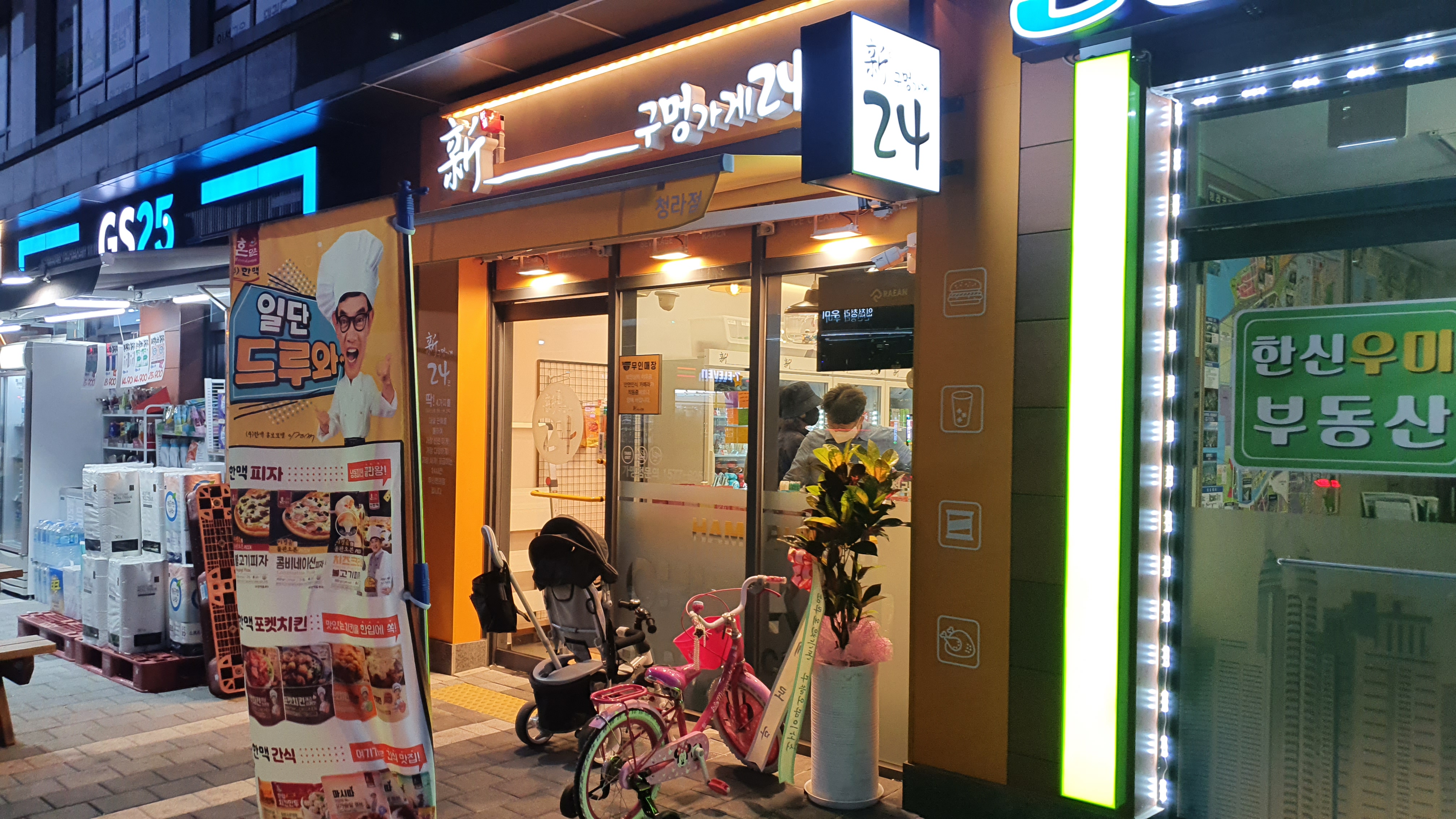 우리 아파트 단지의 상가는 아니지만 바로 옆 아파트 단지 상가에 신 구멍가게 24라는 무인 편의점이 생겼다.