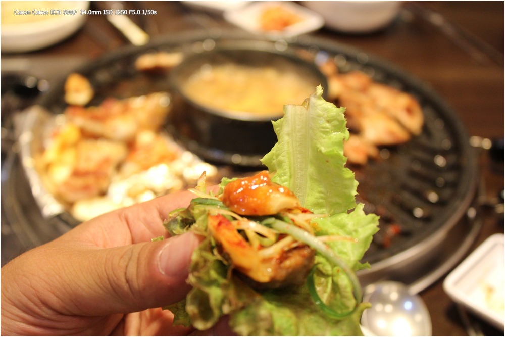 목살의 지방과 삼겹살의 지방이 절제되어 있다. 불판의 기름이 좔좔 잘 빠지는 구조라면 술 없이 고기만 먹어도 딱이겠지만, 역시 삼겹살은 소주와 함께 먹어야 하는 것! 술 없이 삼겹살만 먹기에는 원래 느끼한 법. 내가 술을 못 마실 뿐이지, 맛도 모르는 건 아니니까 ㅜㅜ