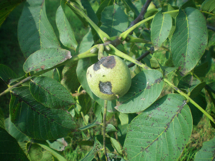 - 호두나무 과실썩음병: 호두나무 과실썩음병은 열매에 발생하는 병충해로, 과습 한 7∼8월에 발생하는 것이 특징입니다. 과일 외피에 갈색 또는 암갈색 반점이 형성되며, 심한 경우 내부가 썩고 검은색으로 변합니다. 병든 부위를 제거하고 소각하며, 석회보르도액이나 석회유황합제를 도포하여 방제할 수 있습니다.