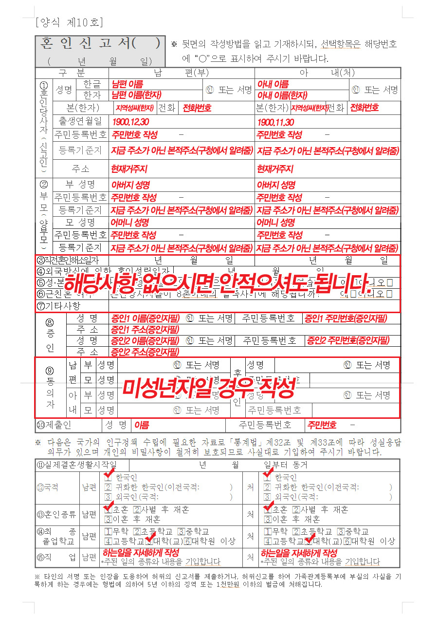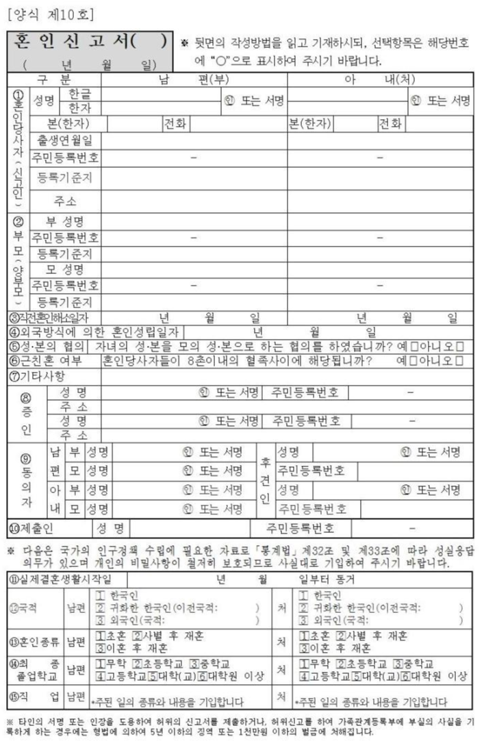 혼인신고서를 자주 써보는 사람은 없겠죠?