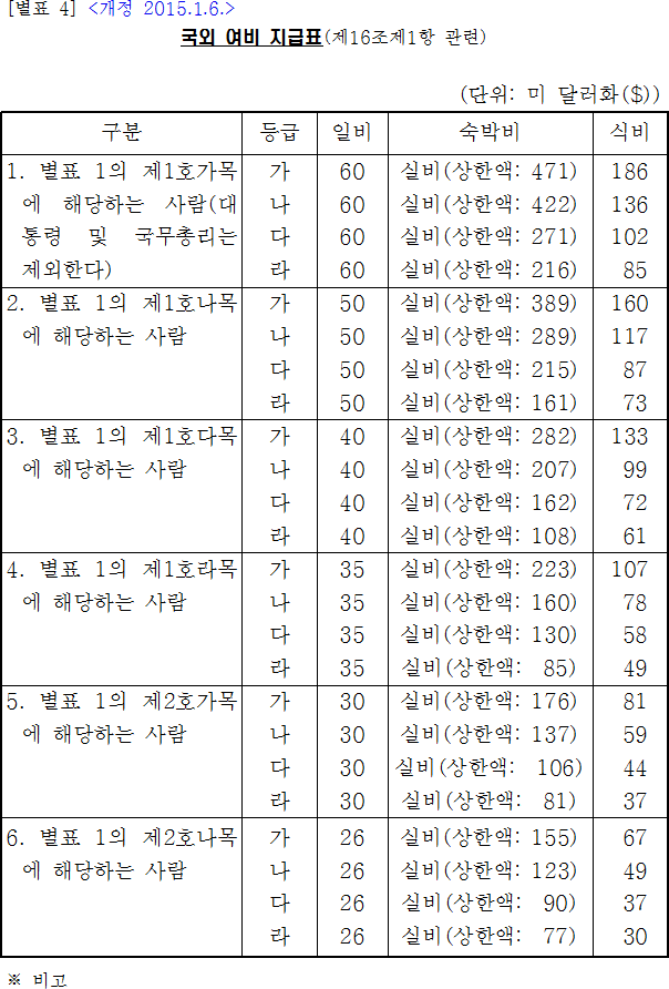 참고로 2013년 이전까지 광역시 이상의 숙박비 상한액은 겨우 5만 원이었어요.