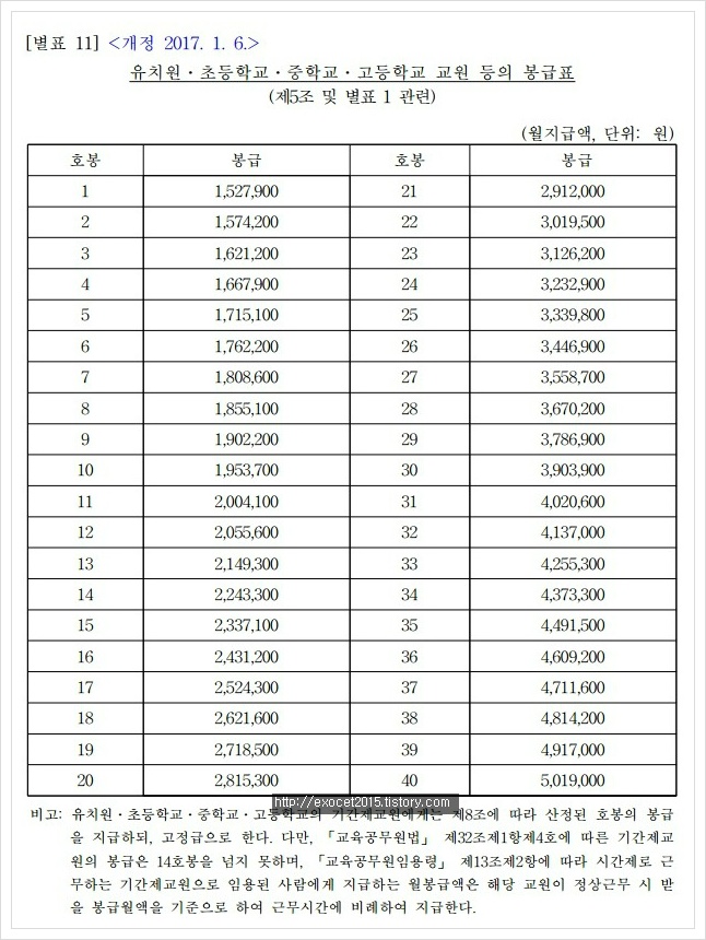 [ 2017 교사 봉급표 / 교육공무원 호봉표 ]