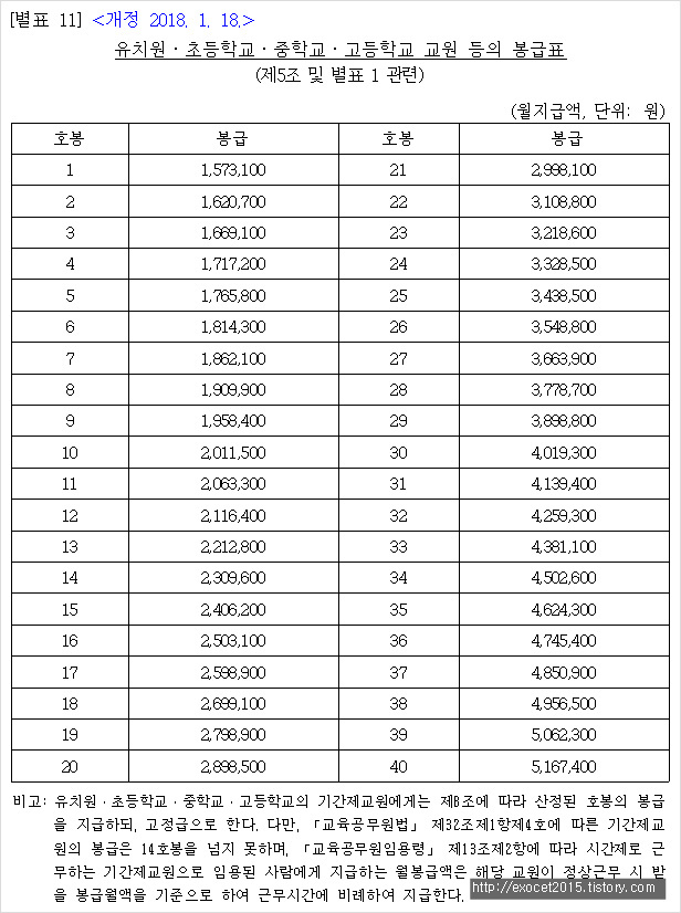 반면에 교사는 계급이 없기 때문에 온전히 호봉으로만 이루어져 있습니다.