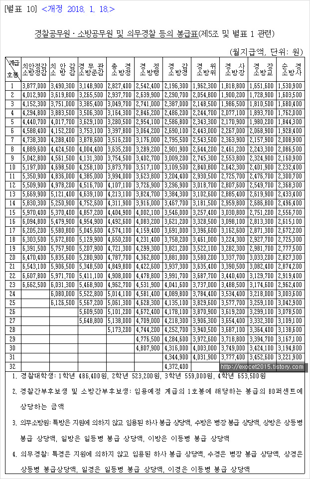 경찰공무원 봉급표 2021 소방공무원 급여표.