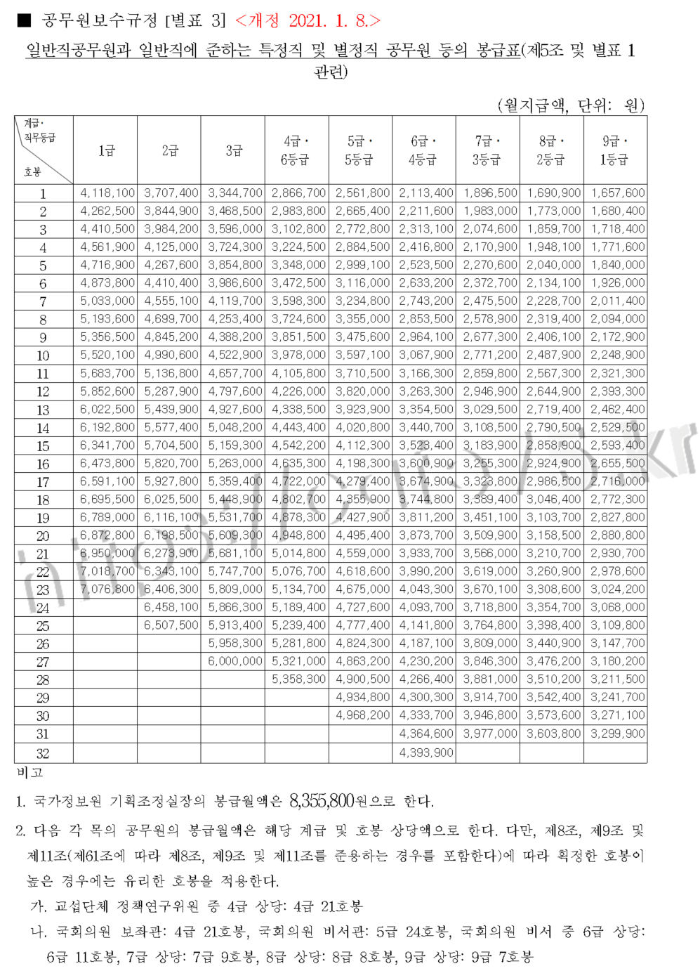 작년 말에는 2급 이상 공무원 봉급을 동결하네 어쩌네 하더니만 막상 개정된 2021년 공무원 보수규정을 보면 이 tR 들도 봉급을 올렸습니다.