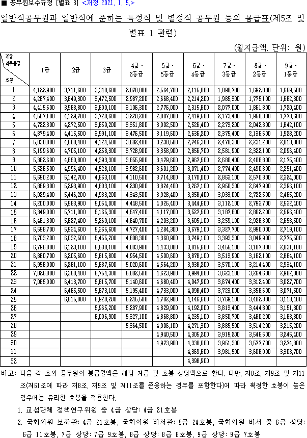 제대로 된 인사혁신처 2021년 공무원 봉급표는 1월 초에 발표됐습니다.