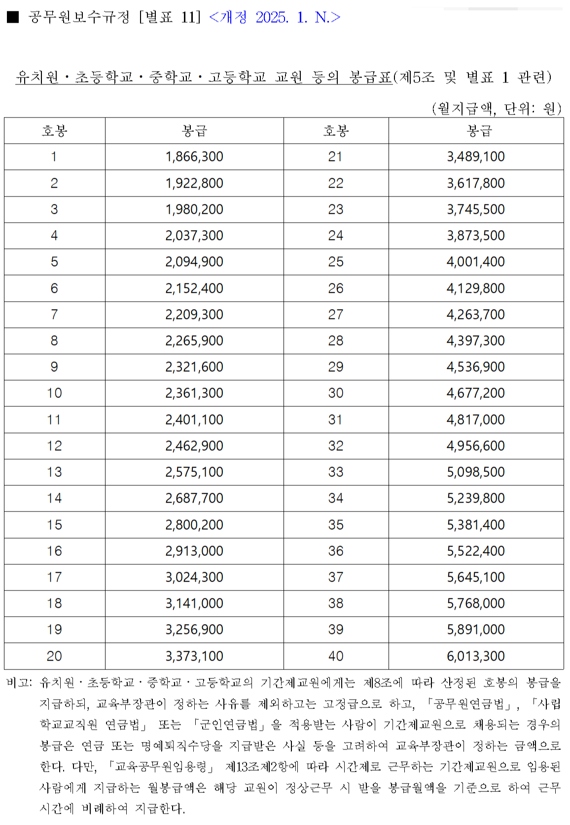 2025 교원 봉급표 2025 교사 호봉표 월급